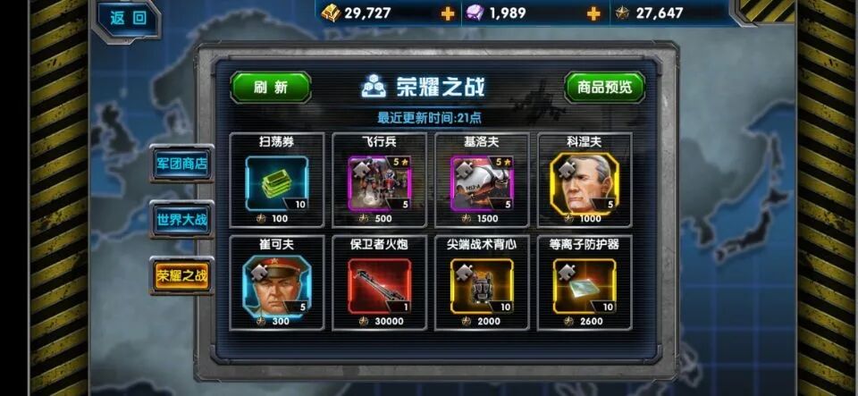 5.指挥官方面:对于我们这些低V玩家而言发展金指挥就是浪费时间。一般而言建议发展紫指挥,就我主力来说我给小红帽配的是波尔曼,作为强力输出部队一定要有强大的续航能力和战斗能力,而波尔曼可以增加小红帽的生命值缺保它不会被敌方的炮击和巡洋导弹秒杀。移动要塞我配的是铁木辛哥,作为肉盾一定要拥有强大的抗打能力,而铁木辛哥可以增加要塞防御和免伤,这无疑让它变的更抗打。而且他们都非常容易兑换。